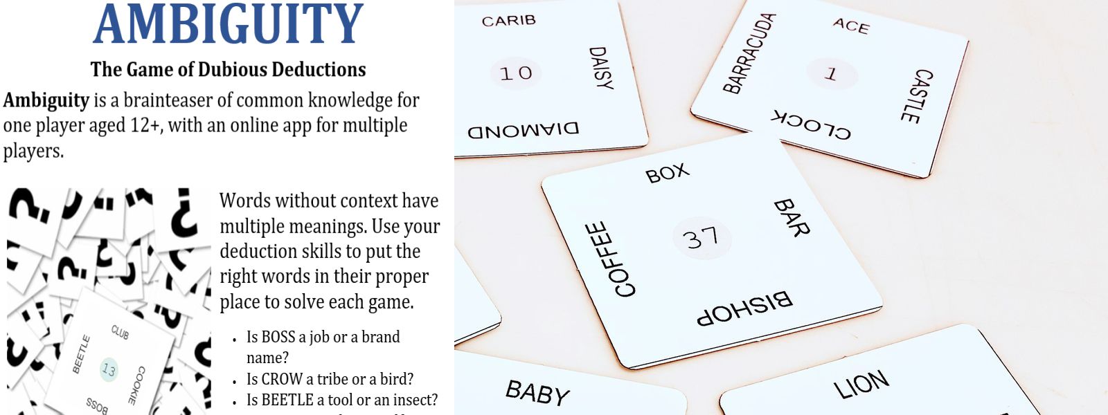 AMBIGUITY is a perplexing game of putting words in their proper places.