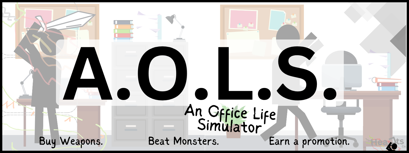 The game "A.O.L.S. (An Office Life Simulator)" is a board game where players are employees who are tasked with helping in the recapture of subjects that were purposely released as part of an emergency release exercise by their company's new owner, the Super Cool Place. The game has a cyclic pattern of shop phase, battle phase, and a "coffee break" phase. In the shop phase, workers point coins can be spent in the company shop in exchange for items, equipment, coupons, and even performance bonus cards. In the battle phase, players fight one monster from the monster pile using their equipment and office supplies card. Players will have a certain number of rounds to beat the monster, and the player with the most worked hours this week goes first. The game rewards workers points to those who excel in the assignment and perform the best, with the possibility of a promotion.