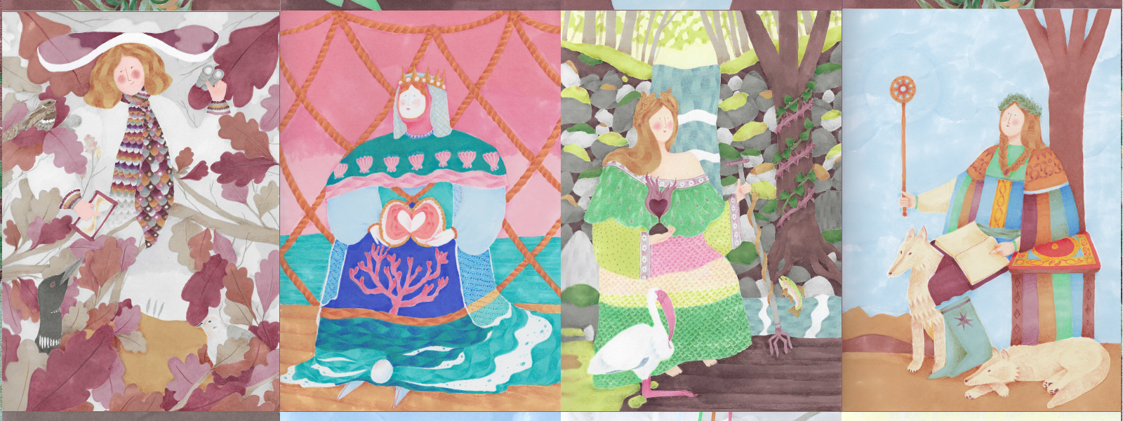 Anecdotes Tarot is a 78-card deck of original illustrations inspired by the music and lyrics of Joanna Newsom. With a cozy folk-art-inspired style, this deck combines the imagery of historical tarots (including the Marseille Tarot, the Waite-Smith tarot, the Florentine Minchiate, and others) with the imagined characters and scenes from the songs. Each card was hand-drawn with vibrant marker and colored pencil, between 2018 and 2020.