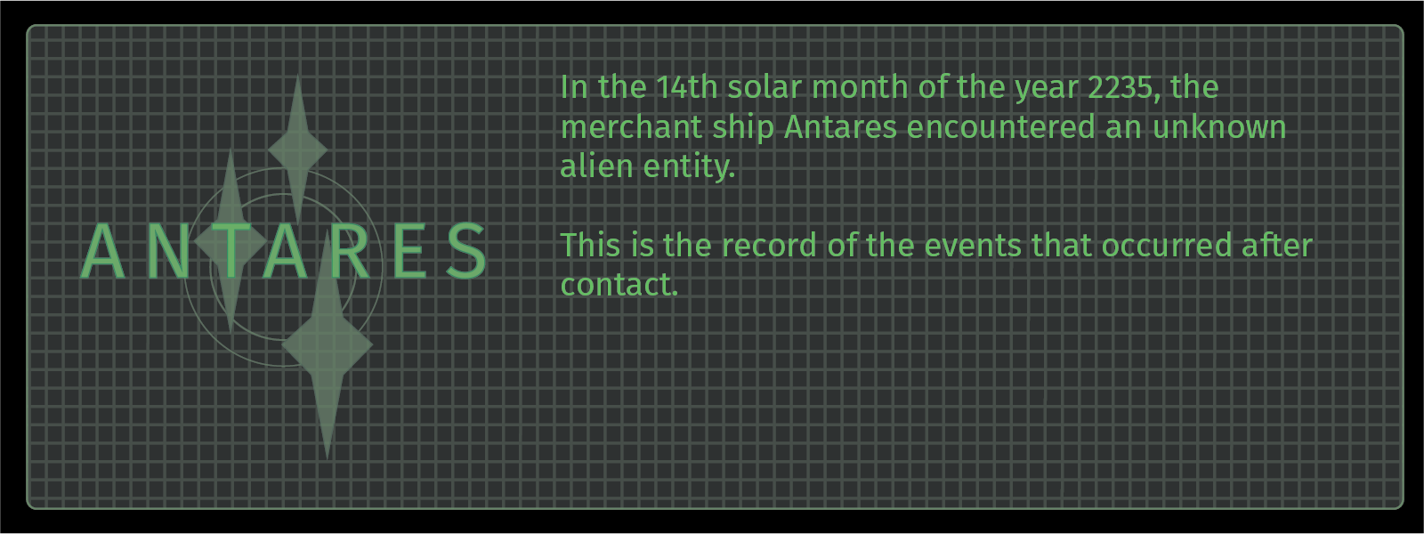 Antares is the first game in the Antares series. Telling the first chapter of the story of the doomed ship Antares, and its alien cargo.