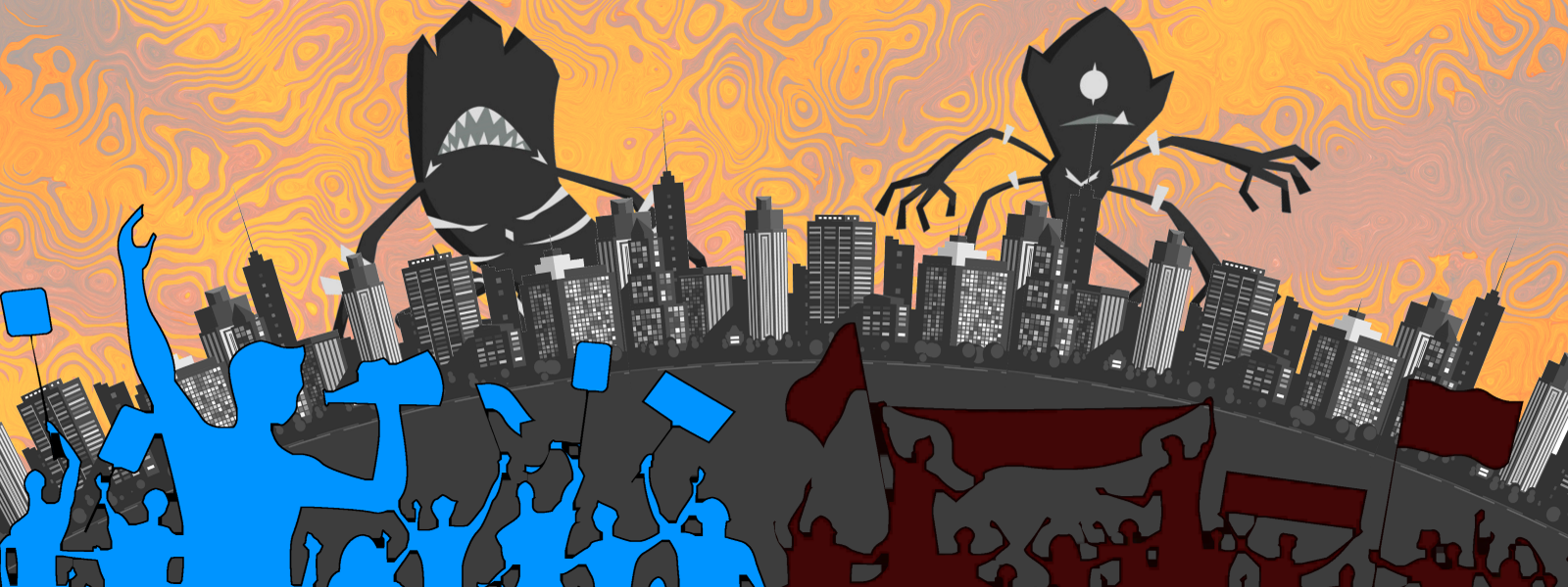 While all the sane people have drifted off to insanity or worse, people have begun taking sides in this monster battle. Fan clubs have popped up in the cities of the world hoping to join the territory of their favorite monster. It's Stockholm Syndrome on a global scale.
