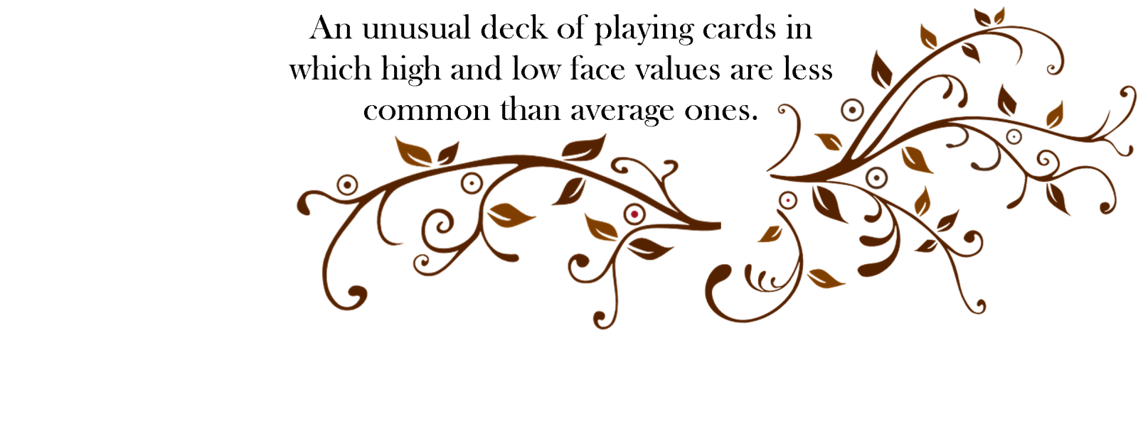 In most playing card decks, all the cards occur equally often, regardless of value. In this deck, the face values follow the "Bell Curve" which means that the cards are more common the closer they are to the average value.