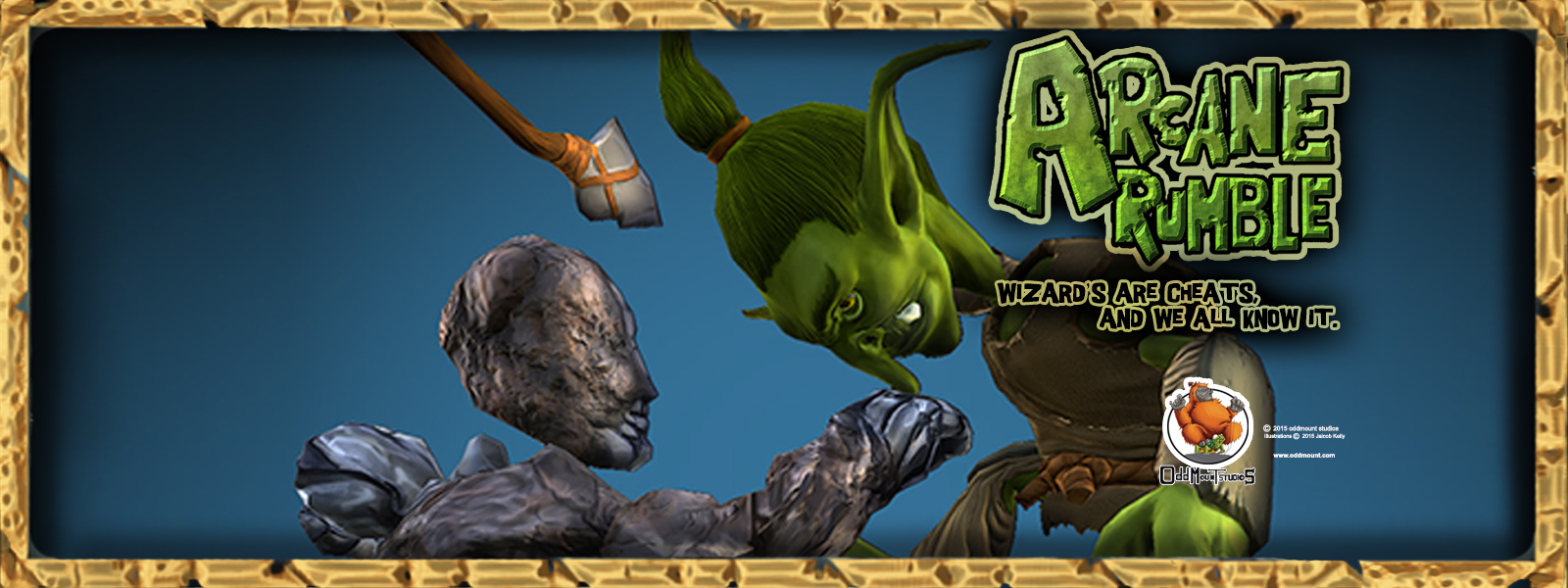 Arcane Rumble is a competitive card and board game where players take the role of wizards playing their own magical board game. Each wizard creates a frankenstein game piece, mashing together the limbs of different fantasy creatures and pitting them against each other in a fight to see which combination is the best. Though sadly wizards are very sore losers, and will stop at nothing to make sure they come out on top, using trickery and magic to mess with the other wizards.