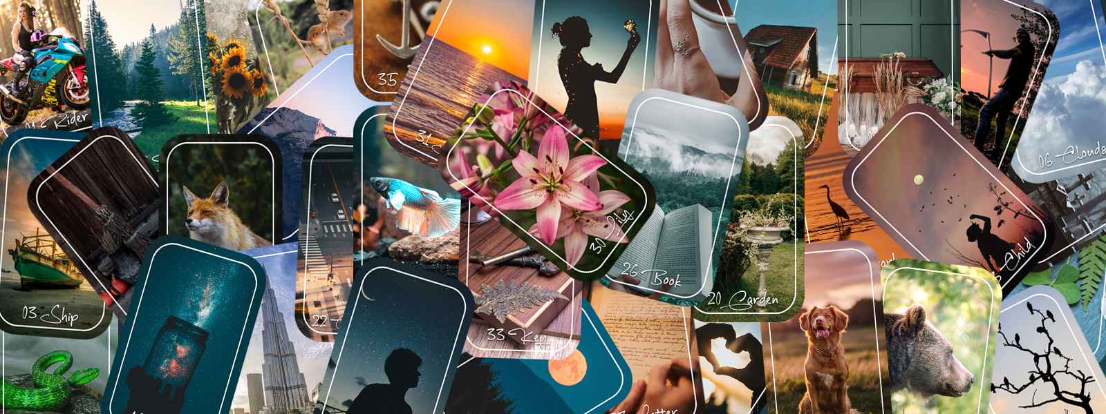 This listing includes the 36 card deck, a tin, and a folio with keywords for each card. The folio does not include instructions on how to read lenormand cards. The Arctic Lenormand is almost entirely made from photos licensed under Creative Commons Zero. Photos were curated from Pexels, Unsplash, and Pixabay with the exception of one photo from my own collection. Credit for all art, fonts included, can be found on the included folio.