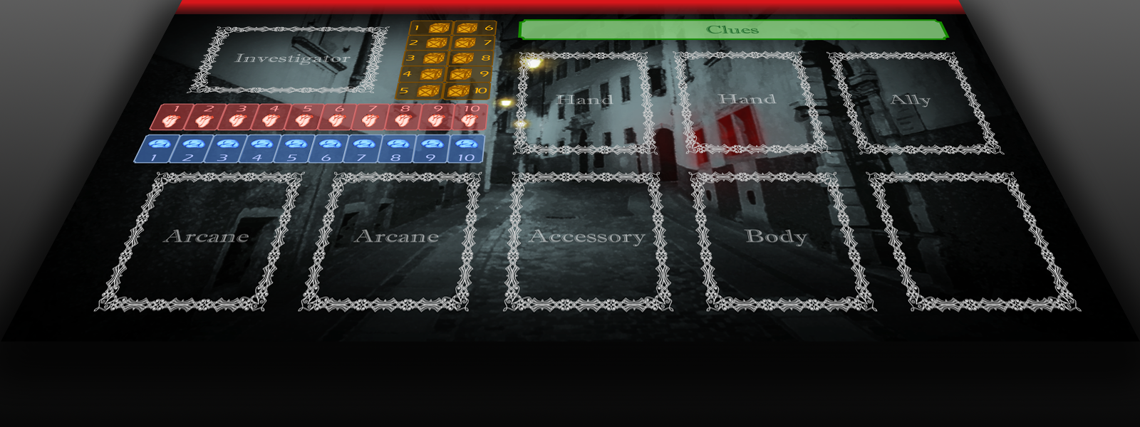 To finish the design, there's a box set aside for Clues to help keep everything organized above the card slots. Plus a shaded area at the top to indicate the Threat area. Everything an investigator needs to delve into the forbidden secrets of the universe is here!