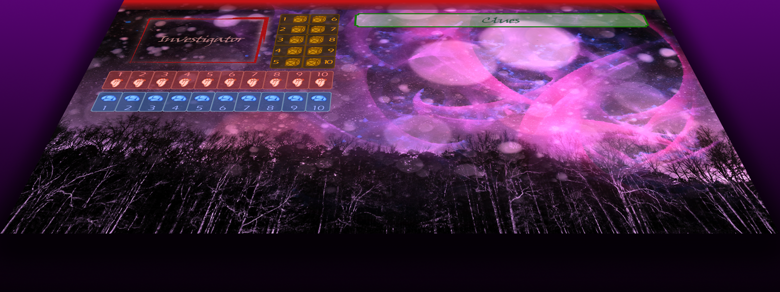 To finish the design, there's a box set aside for Clues to help keep everything organized above the card slots. Plus a shaded area at the top to indicate the Threat area. Everything an investigator needs to delve into the forbidden secrets of the universe is here!