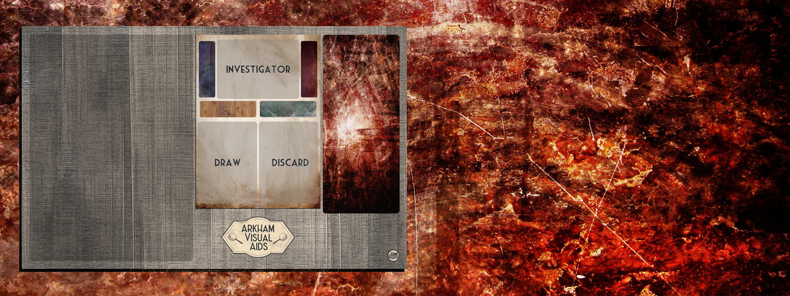 I'm proud of this design and I'm expecting it to serve me for quite a few cycles. There's minimal mark-up so you're getting this mat cheaper than most of the Arkham Horror: The Card Game mats out there.