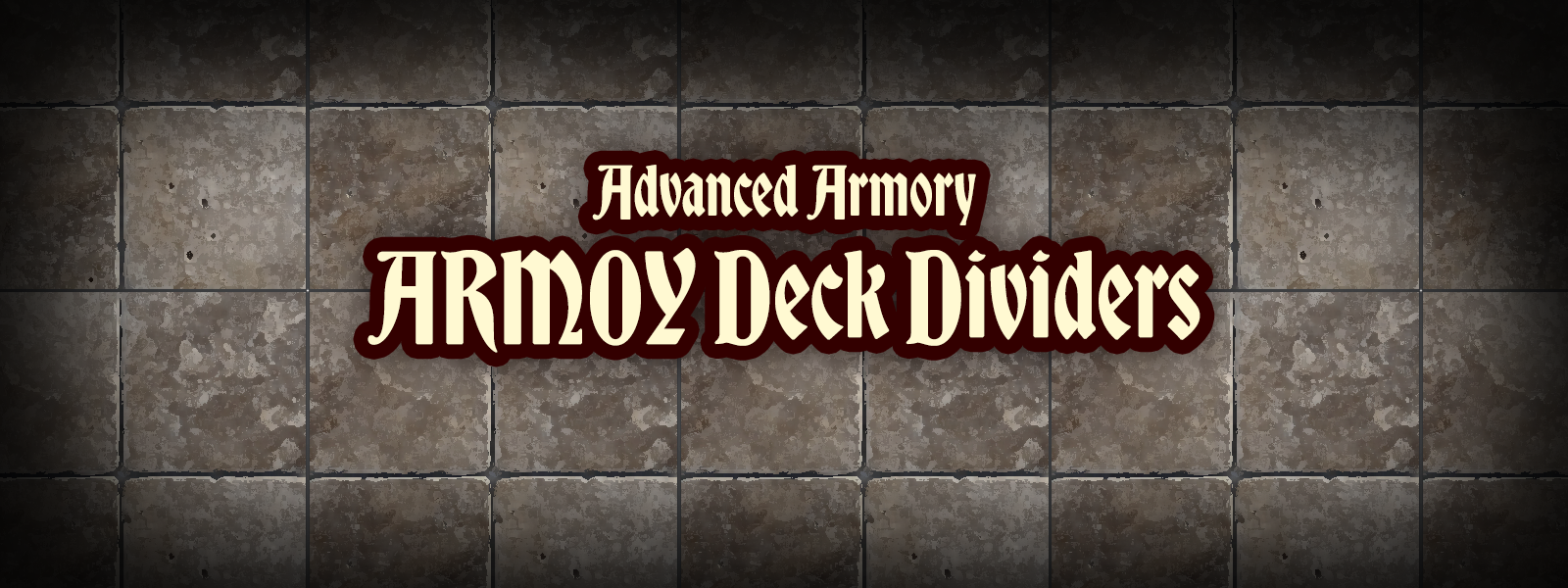 Need extra or replacement dividers for your equipment, potions, and hero cards? We have you covered. These feature Advanced Armory-themed art and are sized to fit the deck boxes made here at TheGameCrafter.