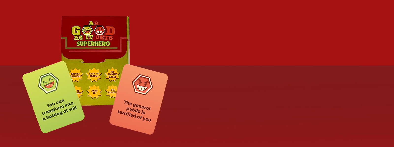 As seen on Kickstarter, As Good As It Gets is the ultimate icebreaker... now, become a superhero with this specially-themed version of the game!