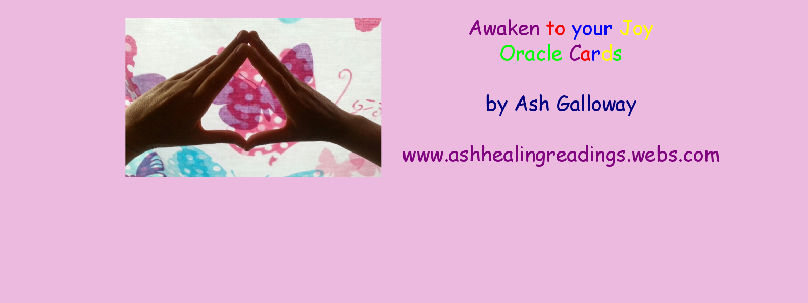 The "Awaken to your Joy Oracle Cards" are 39 oracle cards (and one instruction card) created by Ash Galloway. They are a gift from Ash's friends from other worlds to help awaken the world to joy. Use them to access your inner joy and wisdom, for healing purposes and to receive messages from your inner guidance.