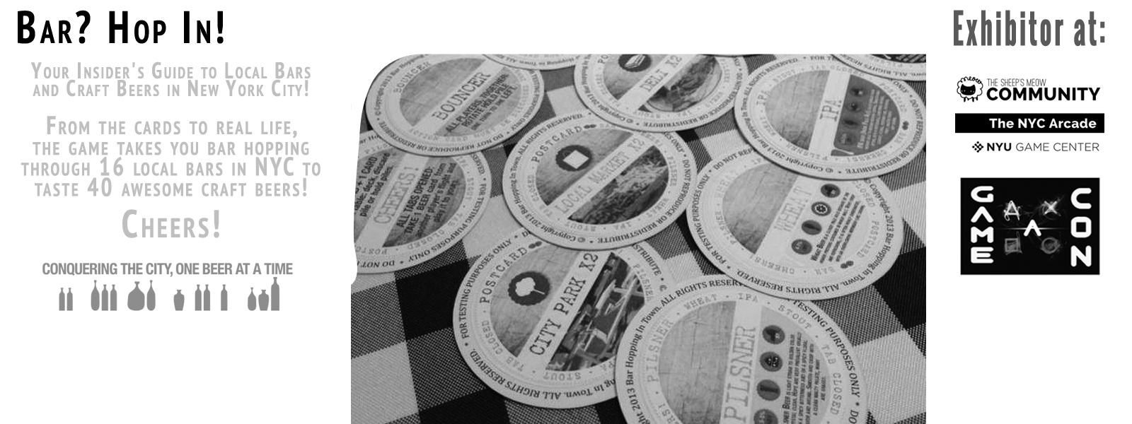 'Bar? Hop In!' is a luck-based card game to serve as your insider's guide to local bars and craft beers in your State. From the cards to real life, the game represents our natural desire to explore different places, experiment a variety of awesome craft beers and make new friends.