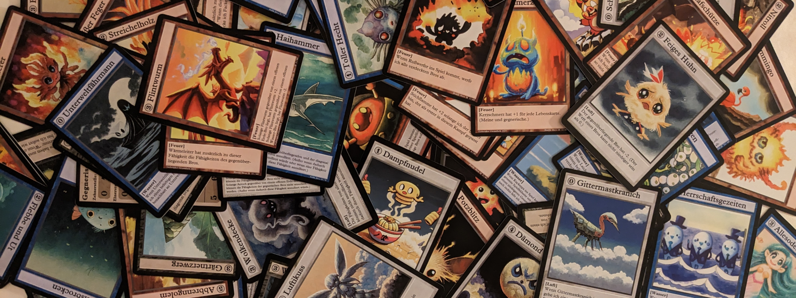 Spieler messen sich mit selbstgebauten Decks, die 20 der insgesamt 130 einzigartigen Karten enthalten!