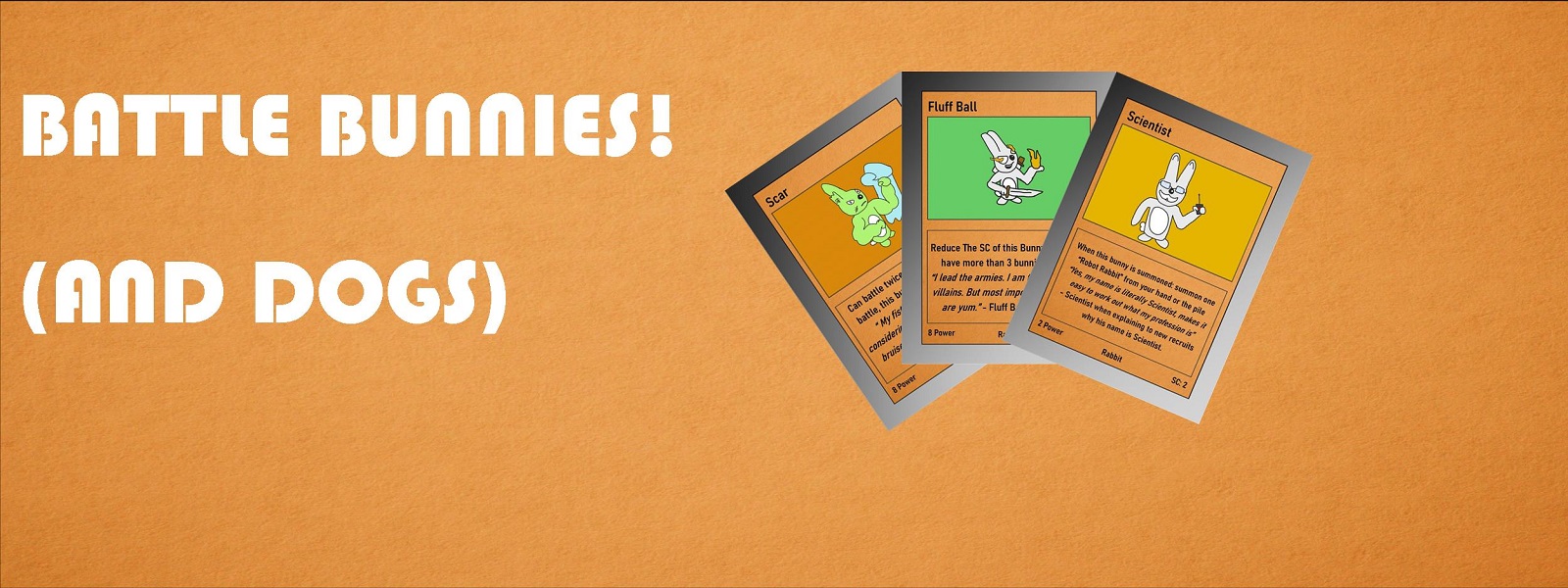 Battle Bunnies (And Dogs) is a fun and easy to learn card game that has similar rules to that of a TCG. The way you win is by using your Bunnies and Dogs to battle your opponents bunnies and Dogs to reduce their health to 0. But watch out! they are trying to the same to you!