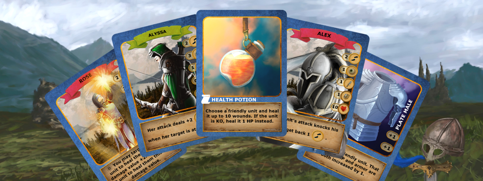 Battle for Dawnstone is a fast paced strategic game set in an original fantasy world. To play the game, simply set up one of many map configurations, and let the carnage begin! Each player takes turns drawing a random assortment of units, equipment and spell cards from their faction deck. Then preforming 5 total actions. The actions can be played in any order and repeated as you see fit, but you may only do 5 things in a turn. The action options are: deploy, move, attack, enhance a unit, play a spell card, or use an ability. Once you have completed 5 total actions, you discard any unwanted cards and draw back up to your hand size. The game continues till one player has destroyed all of the opponents castles.