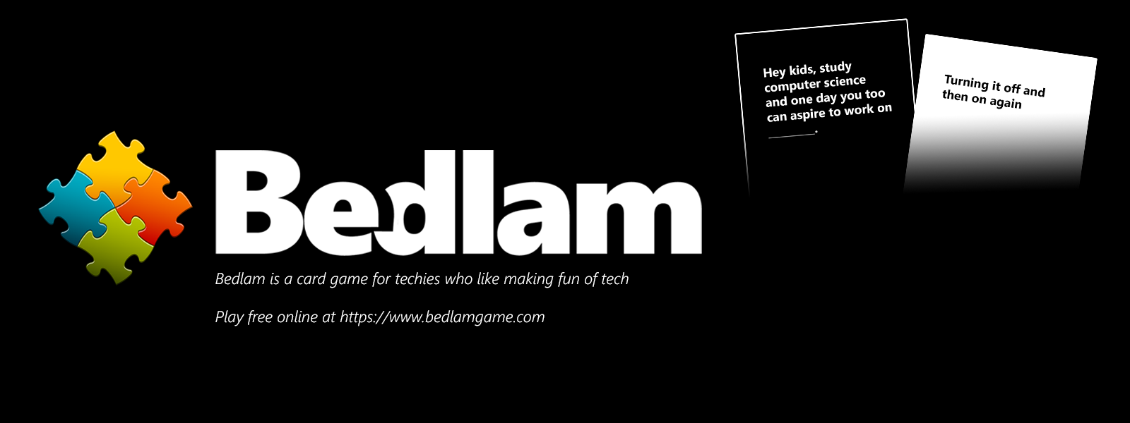 Bedlam is a comparison card game for people who work in tech and like making fun of the stupid, ridiculous, and annoying things that happen in the tech industry. Gameplay is similar to Cards Against Humanity and Apples to Apples.