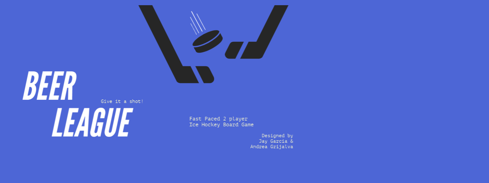 Beer league is a 2 player, fast paced hockey board game that is just complex enough to have plenty of strategy, but simple enough you can learn to play in a few minutes.