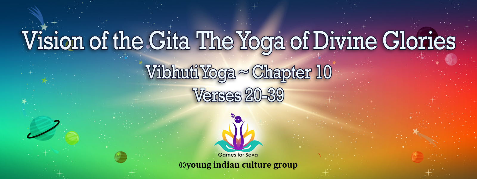 Vision of the Gita ~ Vibhuti Yoga is a product of Games for Seva, a project under Young Indian Culture Group, Inc - a 501(c)3 not-for-profit entity.