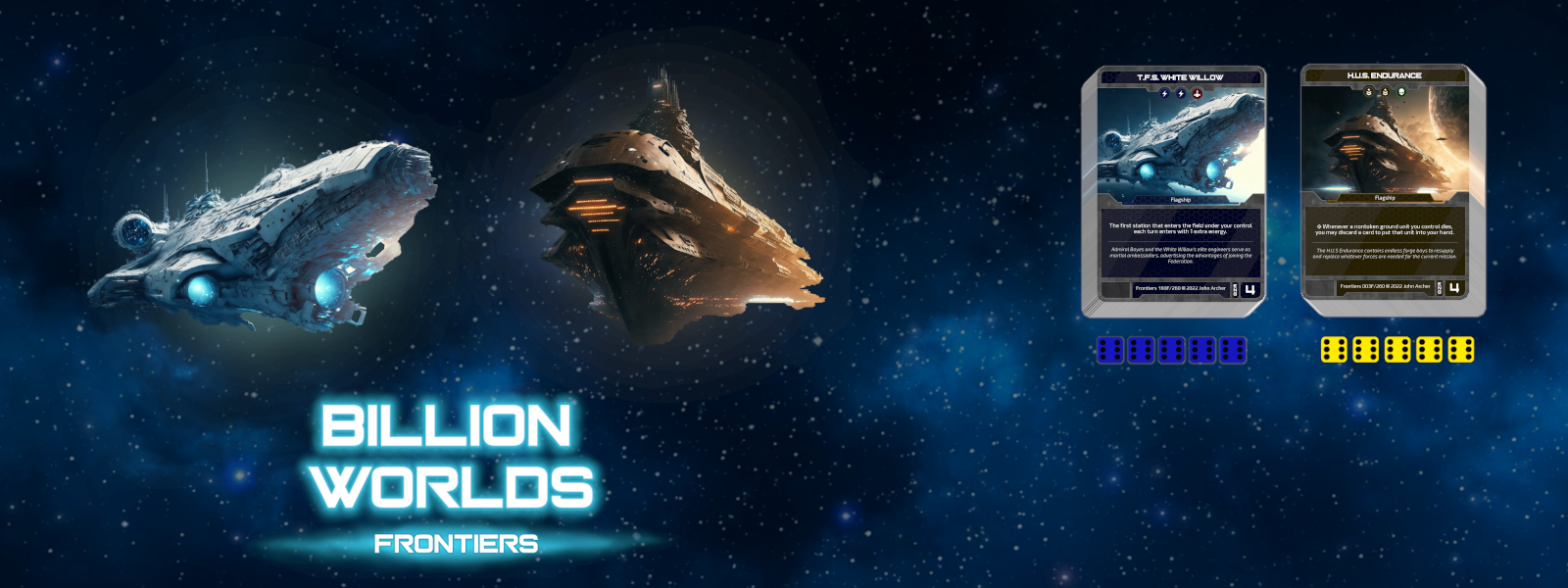 Billion Worlds is a collectible trading card game where two commanders battle to take control of a planet. Build a unique deck using the Doctrines of your flagship and test your skills against the best ideas your friends can brew up against it. You will deploy units, stations and tactics both on the surface of the planet and in orbit to pursue multiple victory conditions.