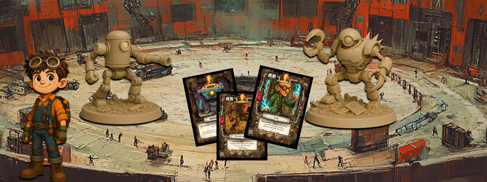 The Billy Bolts Junkyard Skirmish game is a tabletop miniatures skirmish game for all ages that is easy to learn and exciting to play!