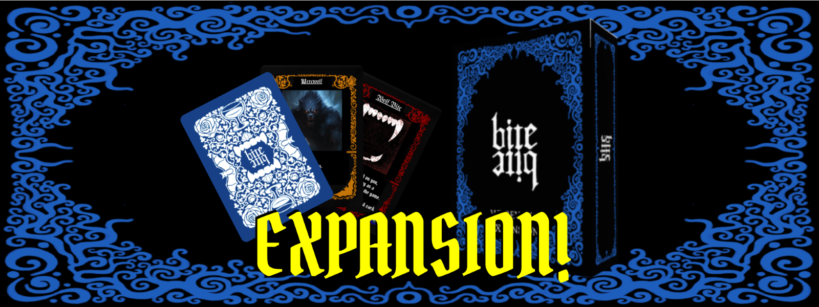 An expansion for Bite! Add Werewolves to the mix and tackle the new challenge of battling the mighty wolves or play as a Werewolf and use the powerful new Werewolf deck! This is an expansion for Bite. Requires a cpoy of Bite to play.