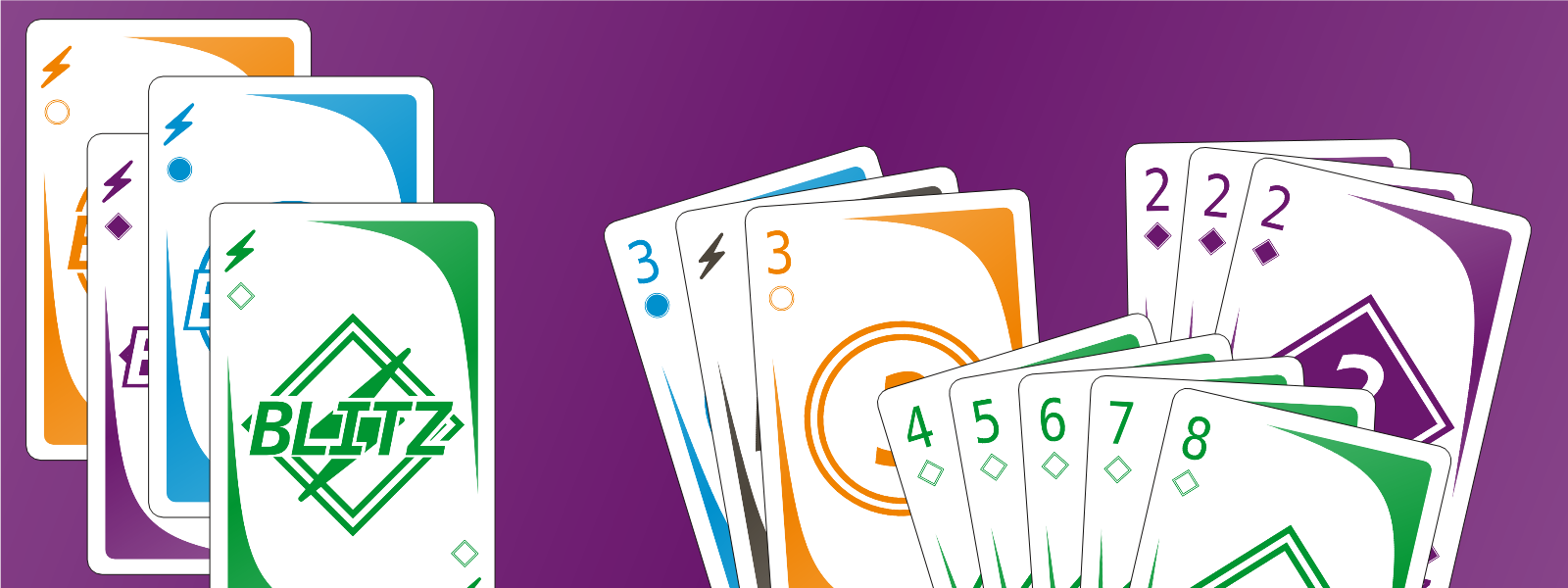 Blitz is a rummy-style game where your goal is to score the most points over 4 rounds by matching 13 cards into Runs and Sets on the table. The first player to play exactly 13 cards to the table discards their last card and wins the round. The highest score at the end of 4 rounds wins the game!