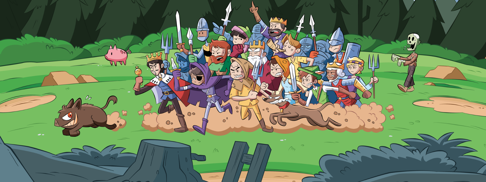 Boar Hunt can be played by 2-4 people and takes about 30-60 minutes per game. Boar Hunt is a movement-based strategy game. Each turn you roll the dice for action points (AP) and then use those AP to move, attack, lay traps, cast spells, and capture the Boar. The first player to capture their Boar is the winner.