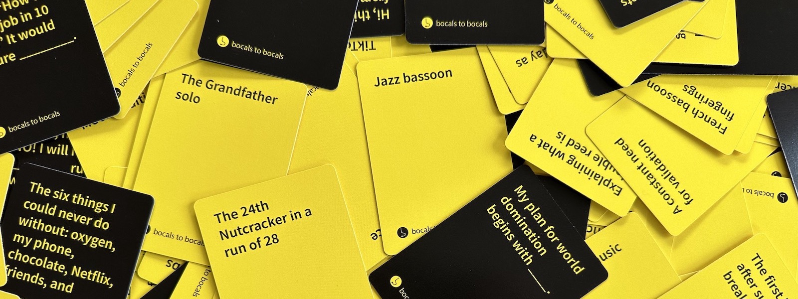 Bassoonists who are fans of Apples to Apples and Cards Against Humanity will love Bocals to Bocals. Non-bassoonists will probably be confused, but maybe that's fun for them too! This epic party game asks players to respond to question cards with inside jokes for bassoonists, from reed gripes to trash talk against clarinet players. Stoke a conversation with your sectionmate about their favorite fingerings or spur on an argument about Tchaikovsky, all while sharing some laughs and procrastinating on your practice!