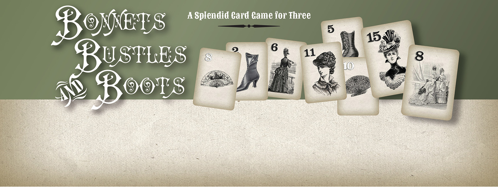 A splendid card game for a courting couple and their chaperone! The 65-card deck depicts charming fashion plates and point values. In each round, players “blind bid” to win Fan Cards, which count as points at the end, but can also be used to raise their bids. Sure to inspire desirable behaviour and friendly banter! See more information at the NewVenture Games website: In Development - NewVenture Games