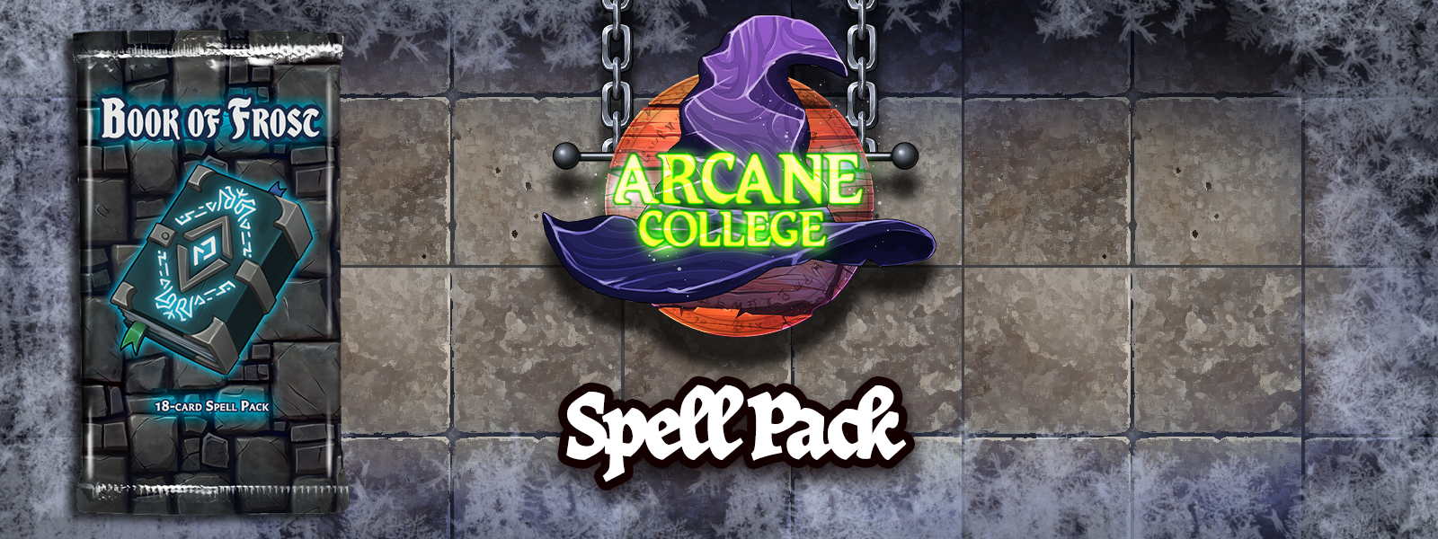 The Book of Frost is an 18-card booster pack and contains the Realm’s collection of icy winter spells. These will give your mages (and monsters) an inventory of fresh new spells to use in your tabletop adventures.