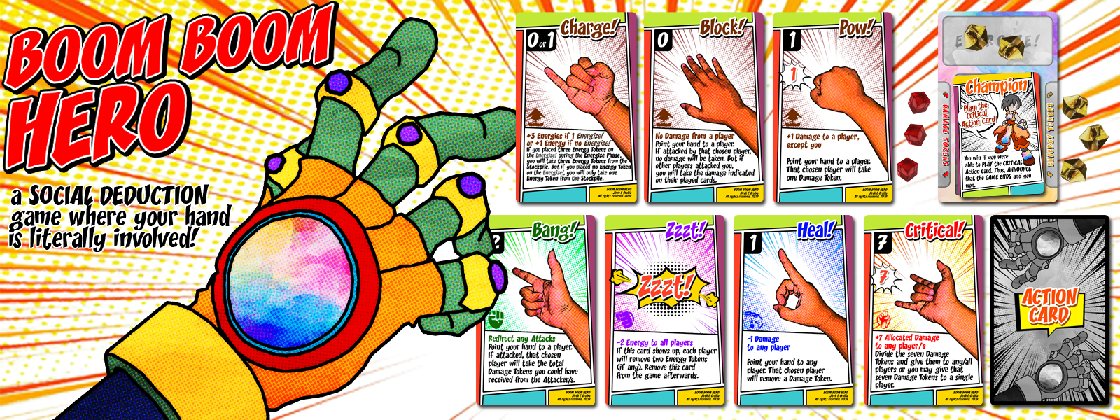 Over the course of several rounds, players will try to achieve their secret Role's objective and also guess other players' secret Roles to hinder their objectives by simultaneously making specific hand gestures; with all sorts of Actions but often involve taking damages and energies or affecting a player's Role.