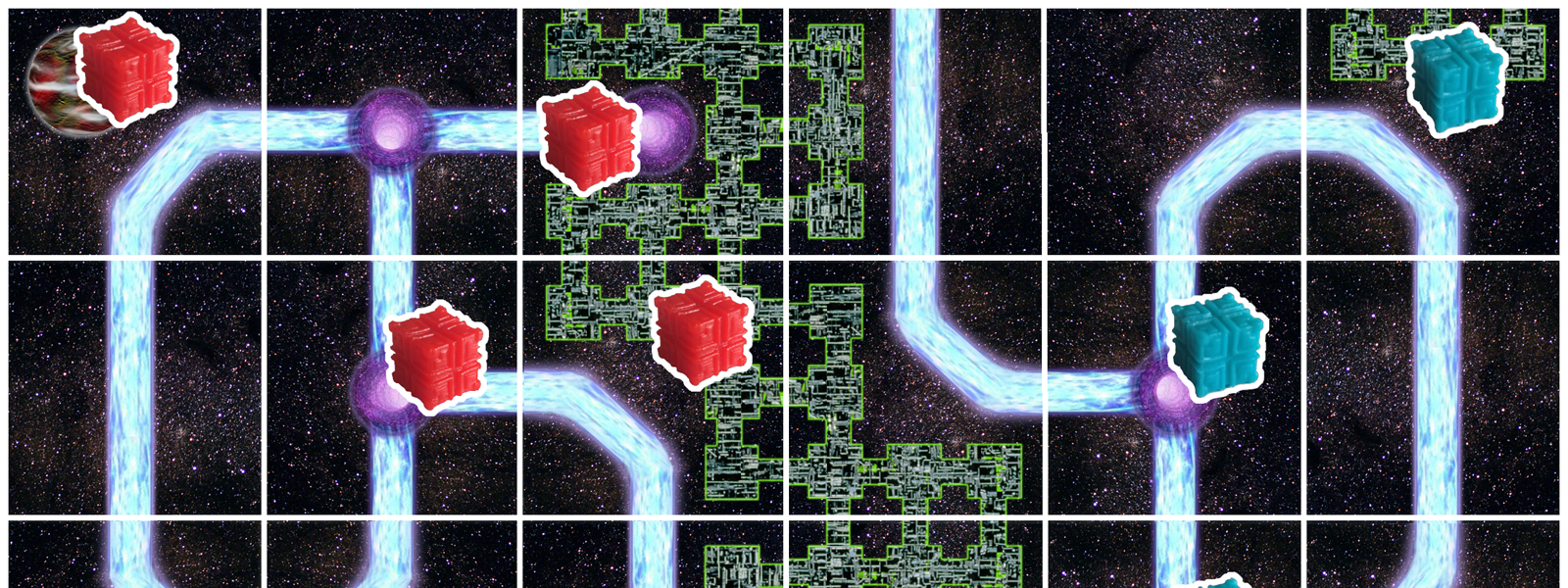There has been a serious break in the hive mind and now there are 2-6 queens vying for power. Control Borg hive structures, planets and wormholes by placing tiles and Borg cubes in strategic positions to win.
