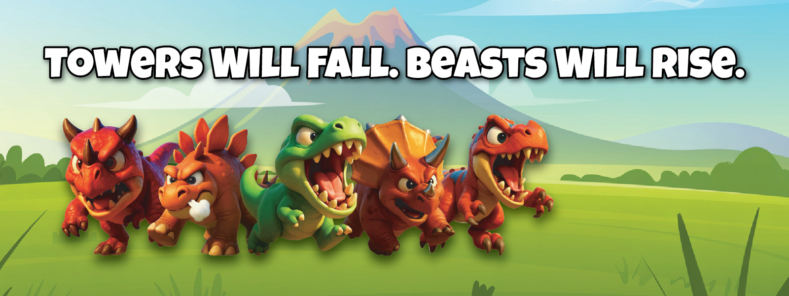 In this primal, dice-fueled card battle game, you’ll command a ferocious mix of real dinosaurs — Carnivores, Herbivores, and Omnivores — to crush your enemies and destroy their defenses. Play powerful Beasts, unleash one-time Items, and boost your lineup with Equipment. But beware—only one player can emerge with the last Tower standing.