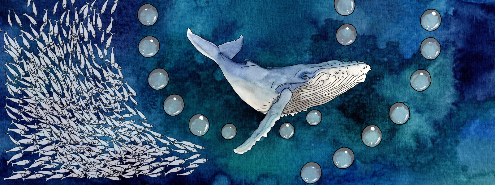 You are a pod of hungry Humpback whales. Using your bubble-netting skills, you are trying to drive a shoal of confused fish into the centre of your bubble spiral, so you can lunge up from the depths and consume them!