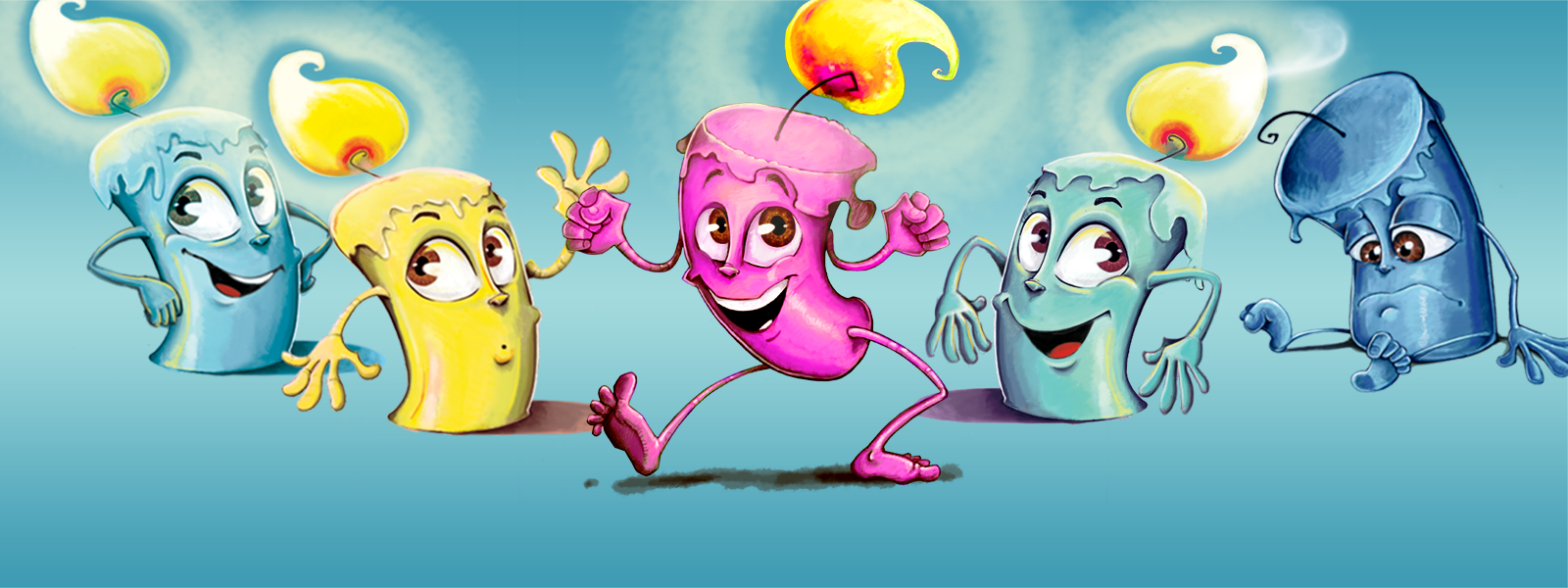 Candle Quest is a lightly-themed set collection and resource management game that features an assortment of dancing, waving and sad candle characters. It is a fast-moving family board game for 2 to 5 players which takes 30-45 minutes to play.