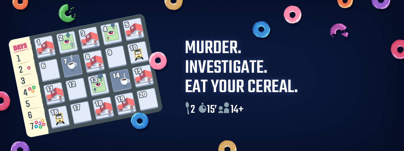 In this tiny hidden movement game, a Cereal Killer will take its victims in a city while trying to remain hidden from a smart Detective. Feel the tension increase and let the deduction work!