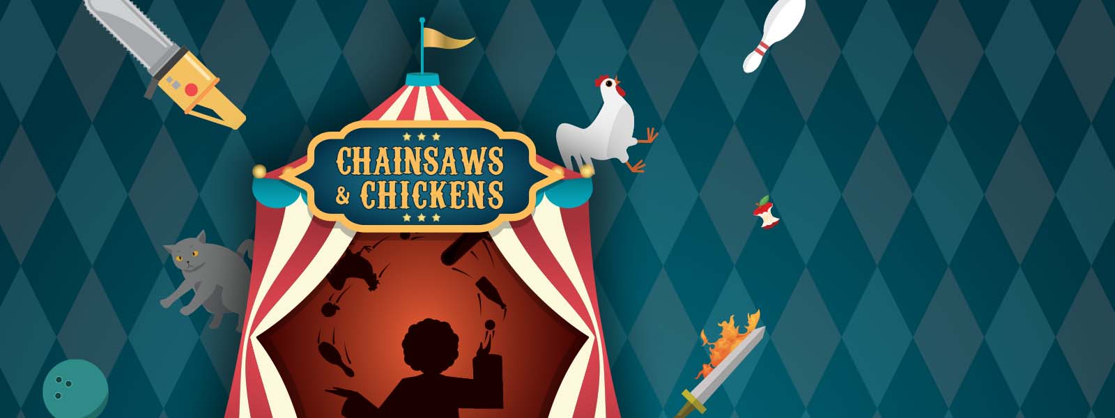 You play the role of a juggling performer trying to wow the crowd with your astounding feats of air born coordination. But you can’t just juggle anything you’d like. You must keep everything in balance, and some things you just shouldn’t put next to each other. (the crowd might be impressed with a chainsaw, but they do not want to see what happens when it bumps into a chicken!) May the best performance win!