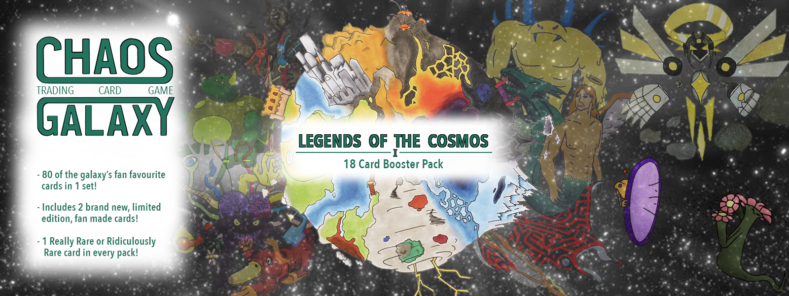 Chaos Galaxy TCG: Legends of the Cosmos is the first reprint set for the game. With 250 cards now existing in the universe, Legends of the Cosmos contains 80 of the strongest, strangest and most loved characters in the game so far!