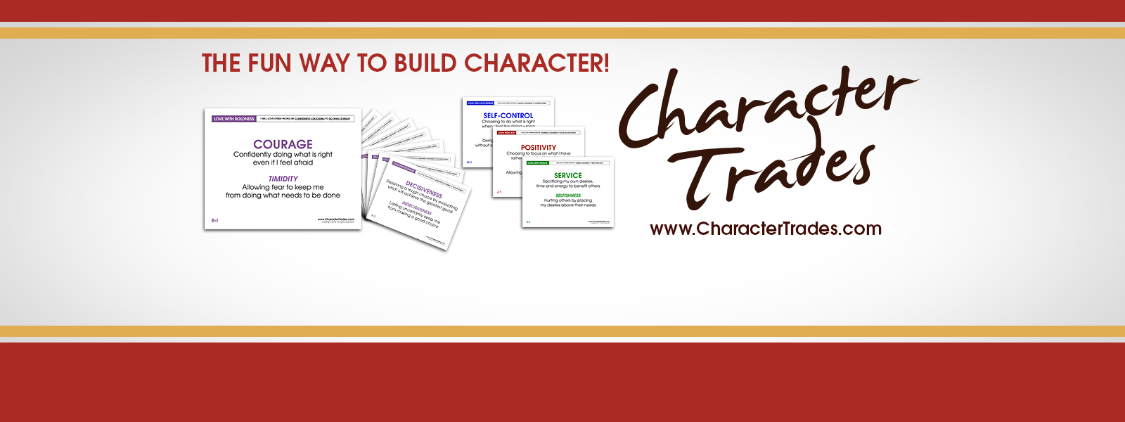 "Character Trades" uses the fun and excitement of games to introduce your child to positive characteristics that lay the foundation for lifelong relational success.