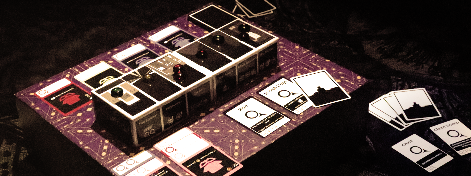 The round begins by forming the drafting line: a row of cards revealed from the deck. Then a randomly chosen gem is placed on each location on the boards, except for the station. The detective plays first by choosing a number of traps they can employ, then secretly choosing a location in which to employ them.