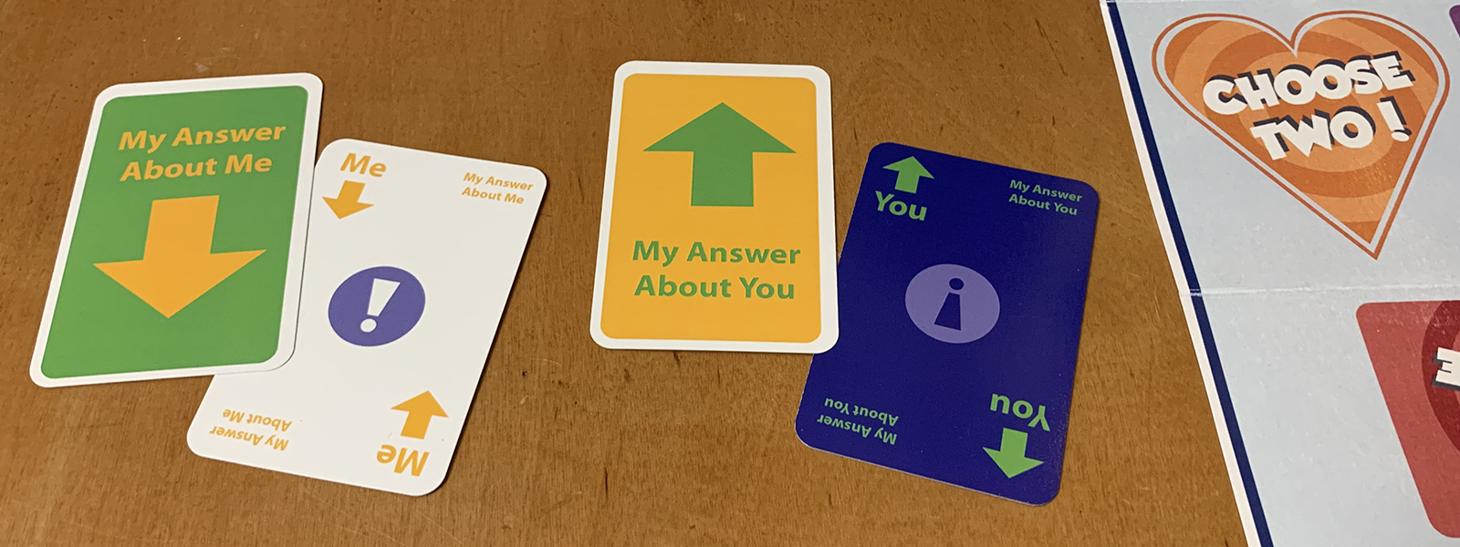 The Choose Two rules make it a game for couples, prospective couples, BFFs, or just any two people who want to get to know each other better.