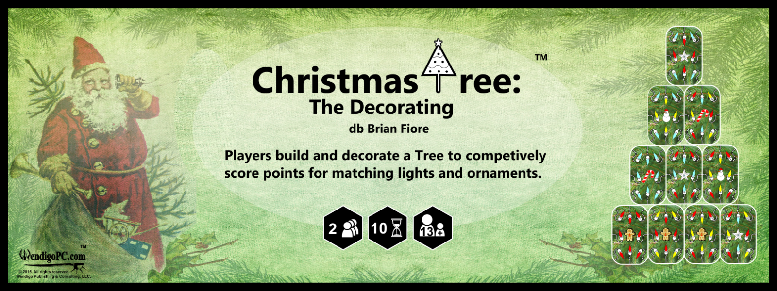 In Christmas Tree, players competitively build and decorate a communal tree while scoring points for matching lights and ornaments.