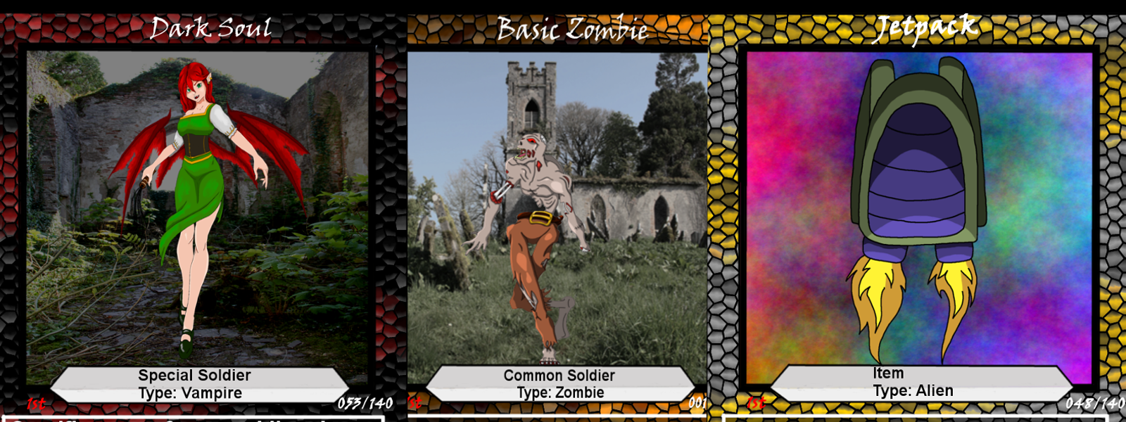 Each deck consists of 40 cards, a how to play card, a phases card and a character card to tell the player a little about the owner of the deck and why they have assembled this army.
