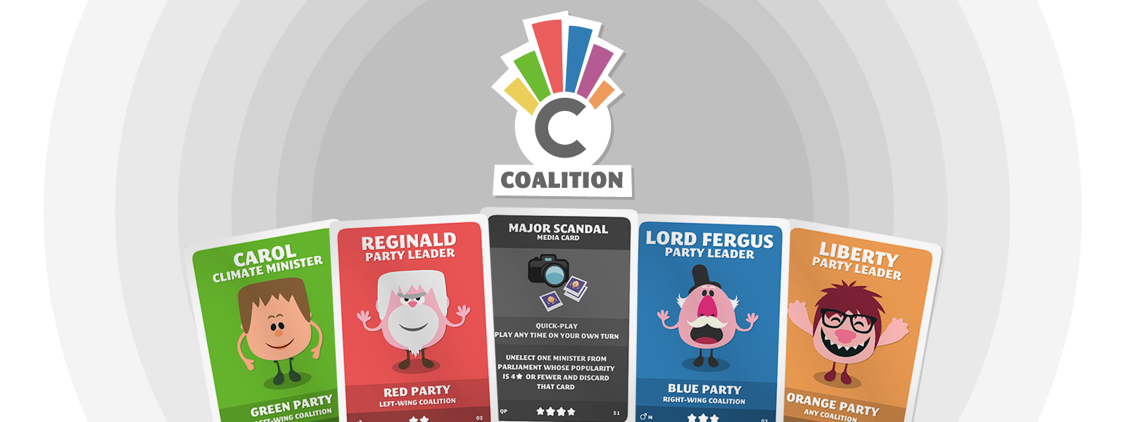 Coalition is a satirical, political card game where players compete to build the first stable coalition of political parties and form a government.