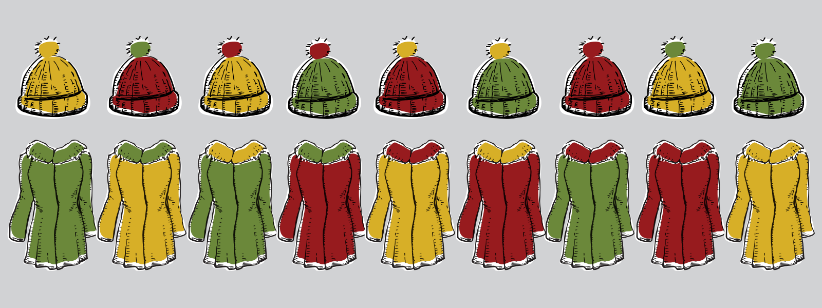 Coats & Hats is a tiny card game packed with coats and hats that need sorting. Match the colour of the items on a rack, while preventing your opponent from doing the same.