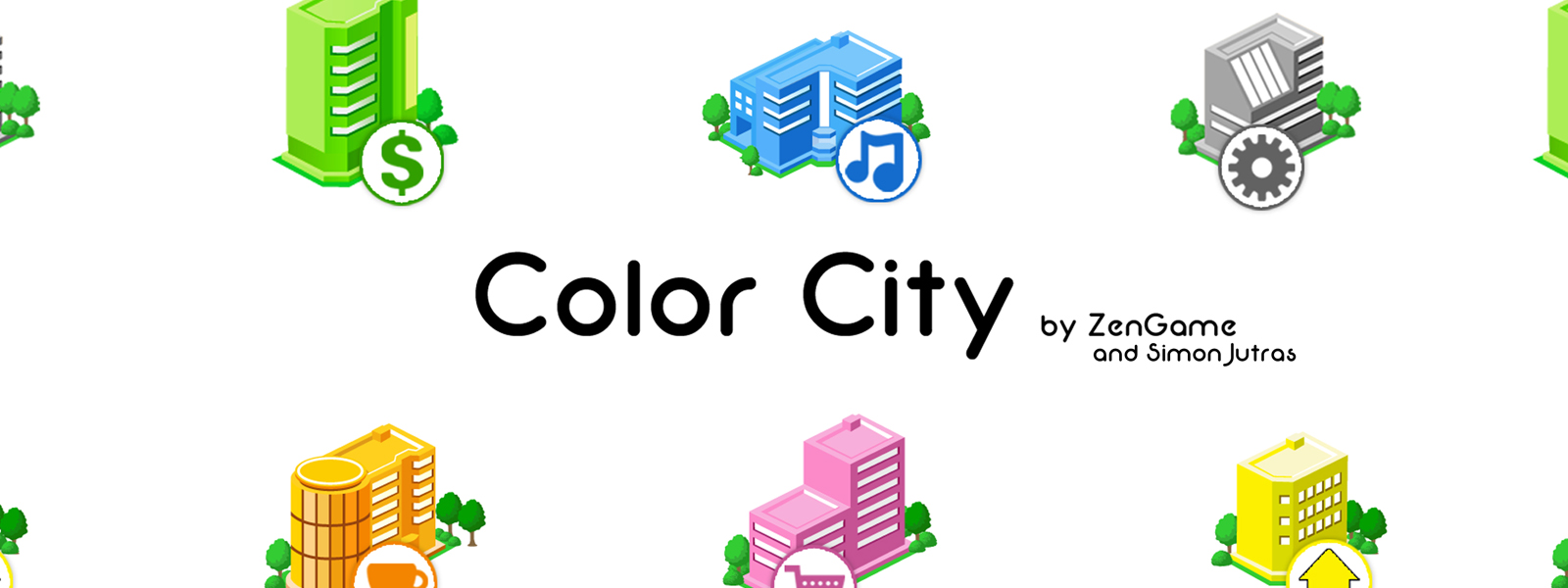 ColorCity is a hot new game involving city construction where industries are involved in the process and want their piece of the pie. Each player represents an urbanist who is hired by one of these industries, but the twist is that players don’t know which industries their opponent represent. While working towards the growth of “ColorCity” by creating road networks you’ll try to advantage your own industry. Industries are represent by color and symbol in the game. Yellow represents residential, orange food, pink commercial, grey industrial, blue entertainment and green financial.