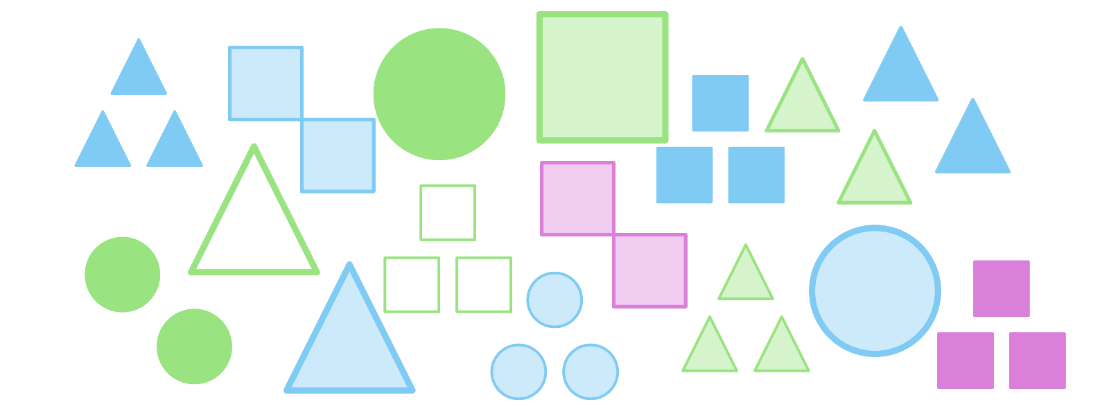 Spot combinations of three figures where color, count, shape and fill, are either the same or all different