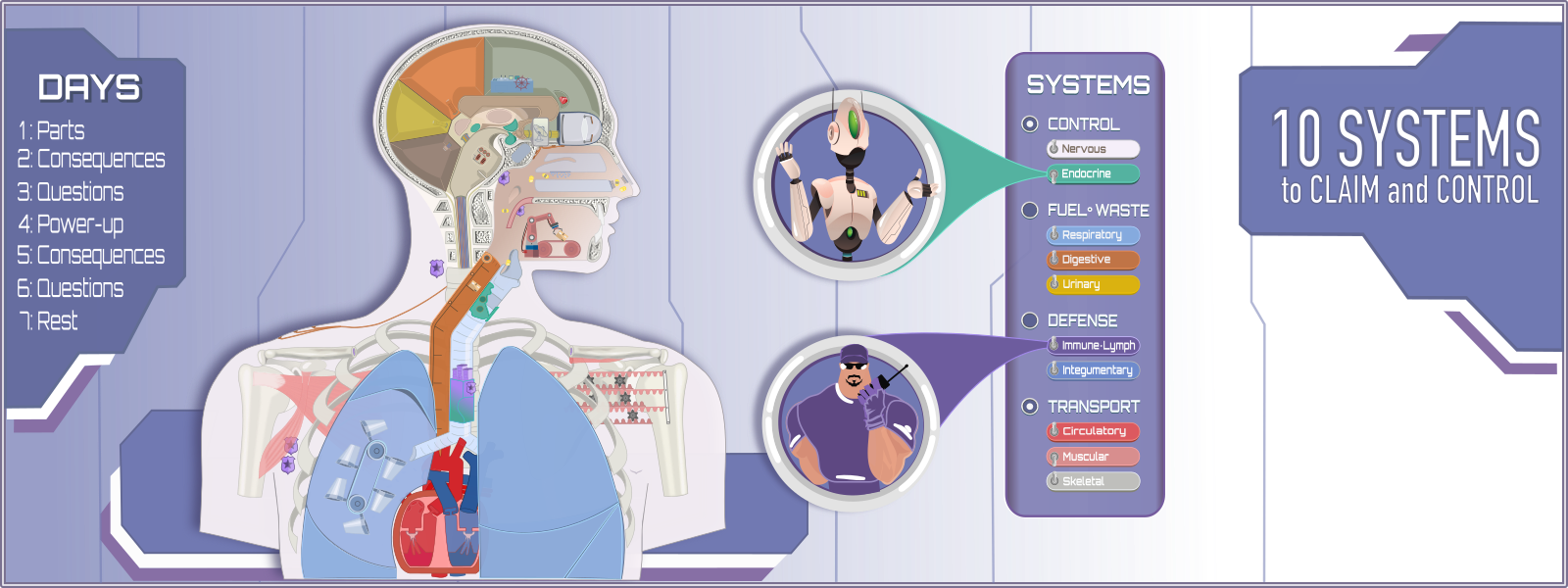 While winning is a delightful reward, the real prize is a deeper understanding of how your incredible body functions. This board game will lay a foundation (mind map) for future anatomy and physiology studies and impact your choices regarding diet, fitness, and health. But regardless of whether you need inspiration or soaring test scores, a grand adventure awaits when you embark on the curious Health Quest of Complexity. Wise castaways, however, may first play the Body System Battles to learn the lay of the land.
