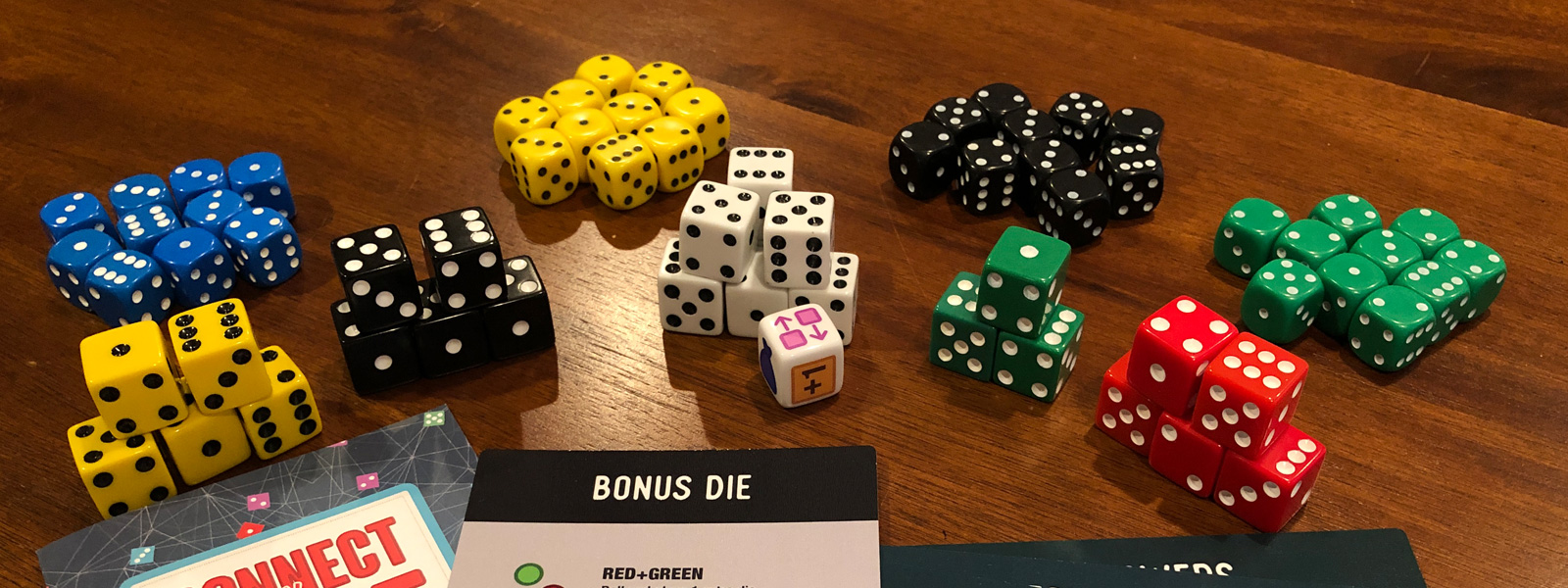 In Connect the Dice, players take turns rolling and placing dice. Dice are placed by connecting them to existing sets. When connecting dice, they can count up, down or repeat the starting number. Once a set is completed, players will earn dice which work as special powers and points at the end of the game. The game ends when you need to draw a new power die and there are none left in the bag.
