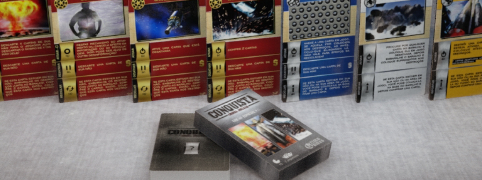 “Conquer: Nuclear War” is a card game for 2 players where each one of them assume the role of a war general. The cards, which represent military elements, are strategically manipulated always paying attention to the primary cards.