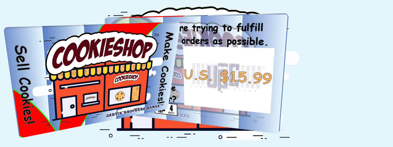 You play the COOKIESHOP mint tin game as one of the bakers that makes cookies to satisfy the desires of thier customers. You match the cookies you draw from the deck with the orders you select, gaining victory points for each completed order. Each player receiving 5 cards and chooses a baker to represent them.